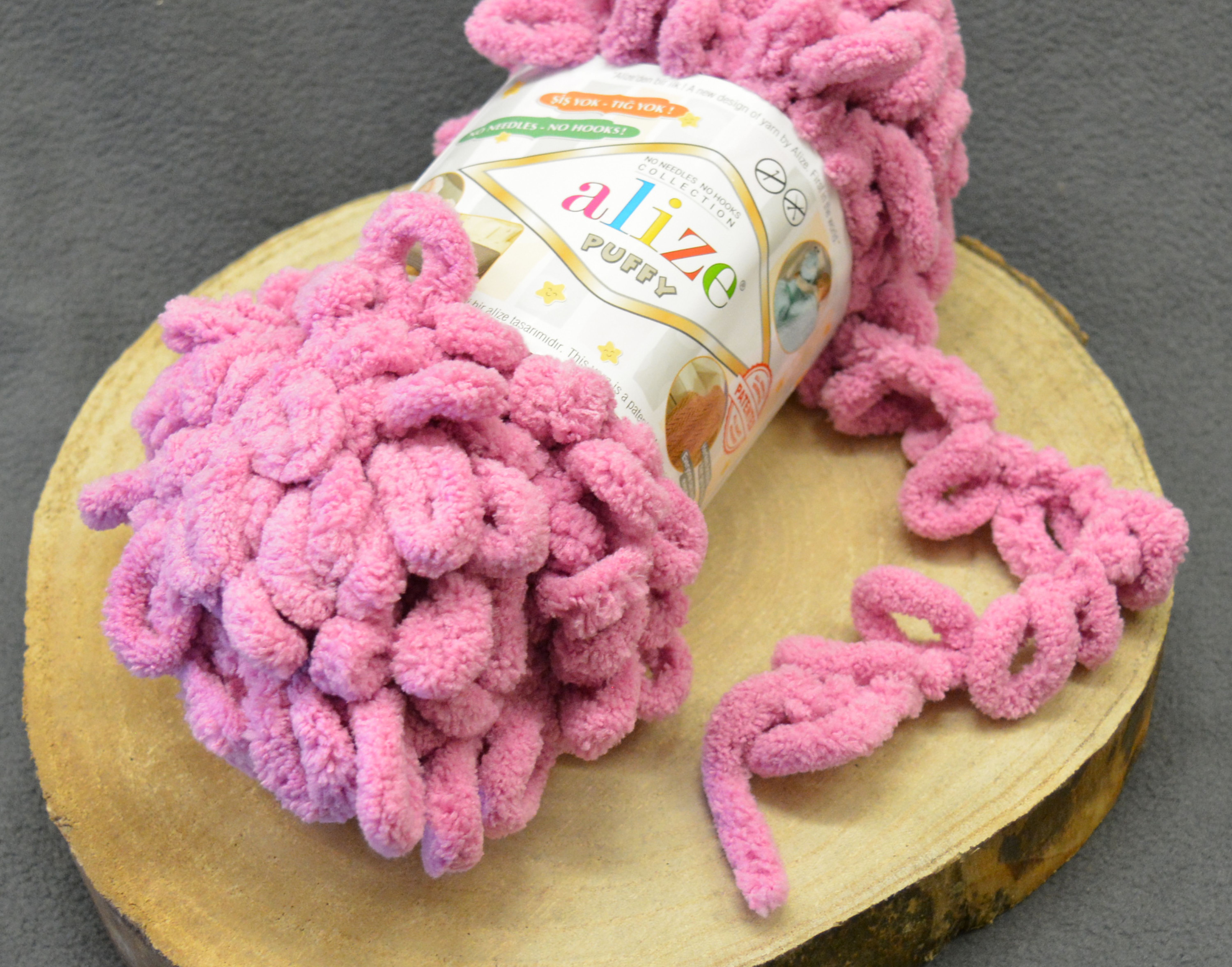 Příze Alize Puffy je smyčková chlupatá příze s velkými očky, která je určena pro pletení pomocí prstů.