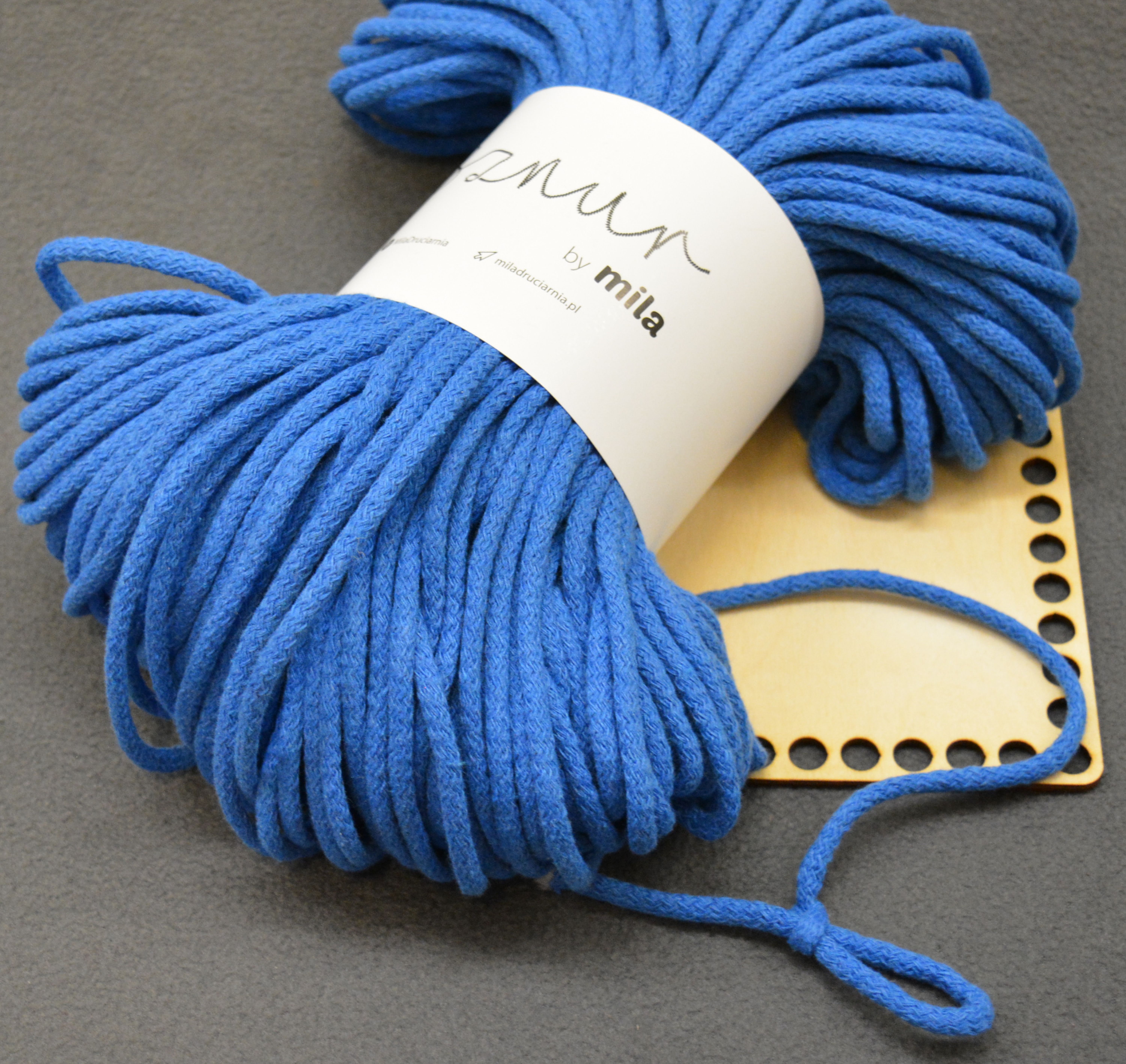 Bavlněná šňůra 5 mm s polyesterovým jádrem. Šnůra je ideální pro háčkování košíků, tašek, rohoží, podložek, pufů atd., ale také pro techniku macramé - drhání. Šňůra je na dotek měkká a pružná.