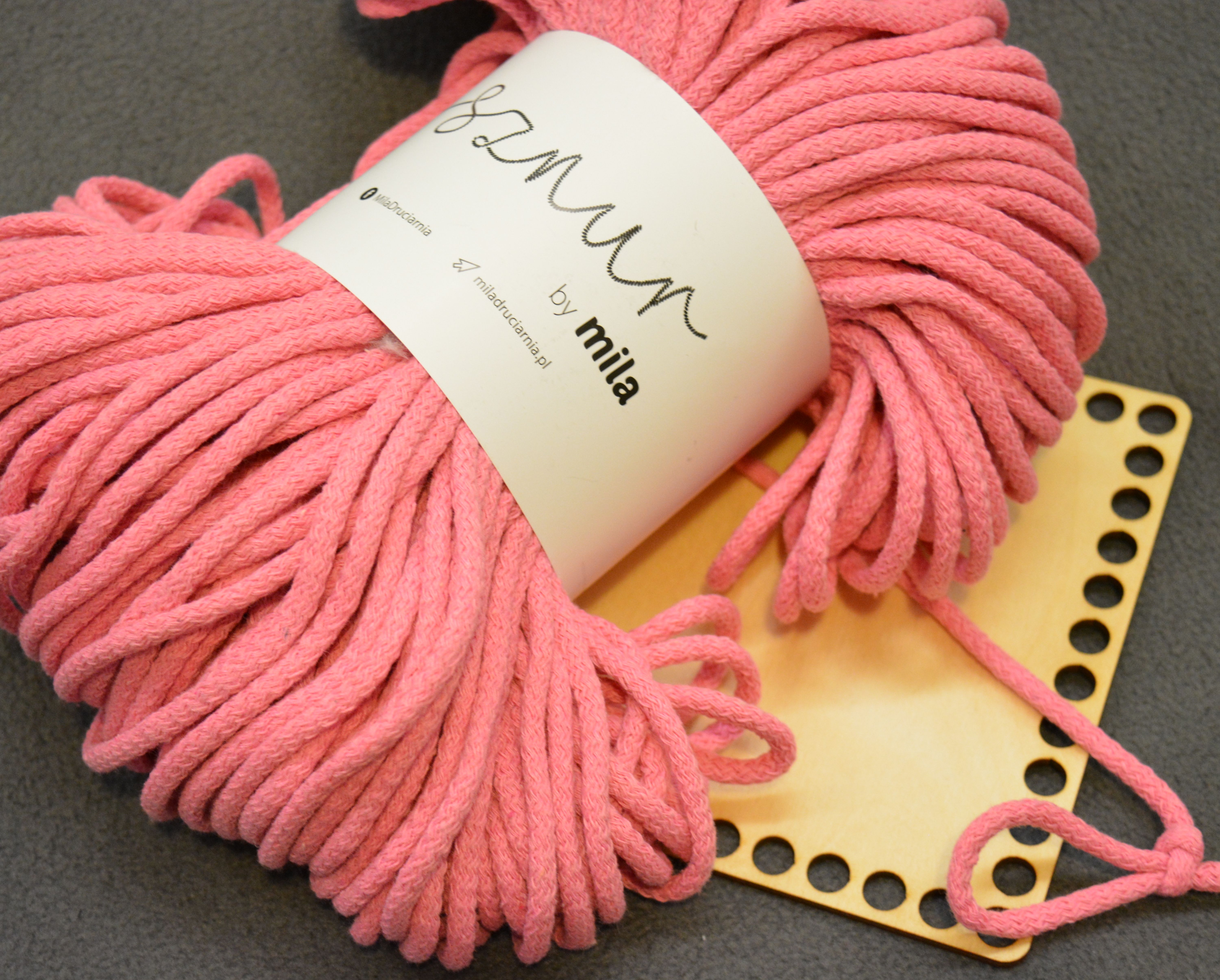 Bavlněná šňůra 5 mm s polyesterovým jádrem. Šnůra je ideální pro háčkování košíků, tašek, rohoží, podložek, pufů atd., ale také pro techniku macramé - drhání. Šňůra je na dotek měkká a pružná.