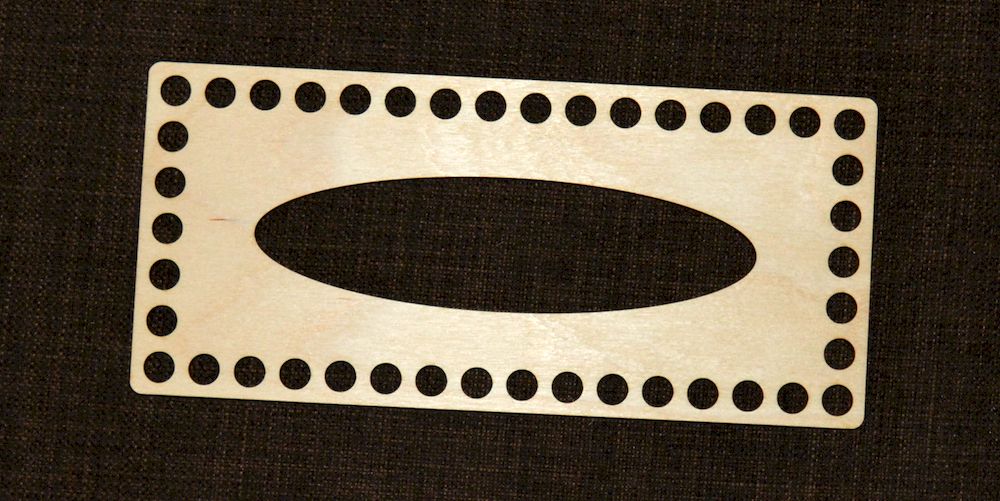 Dřevěné víko, které je vhodné pro výrobu háčkovaných krabiček na kapesníky ze špagátových nebo šňůrových přízí. Vyrobeno v České republice.