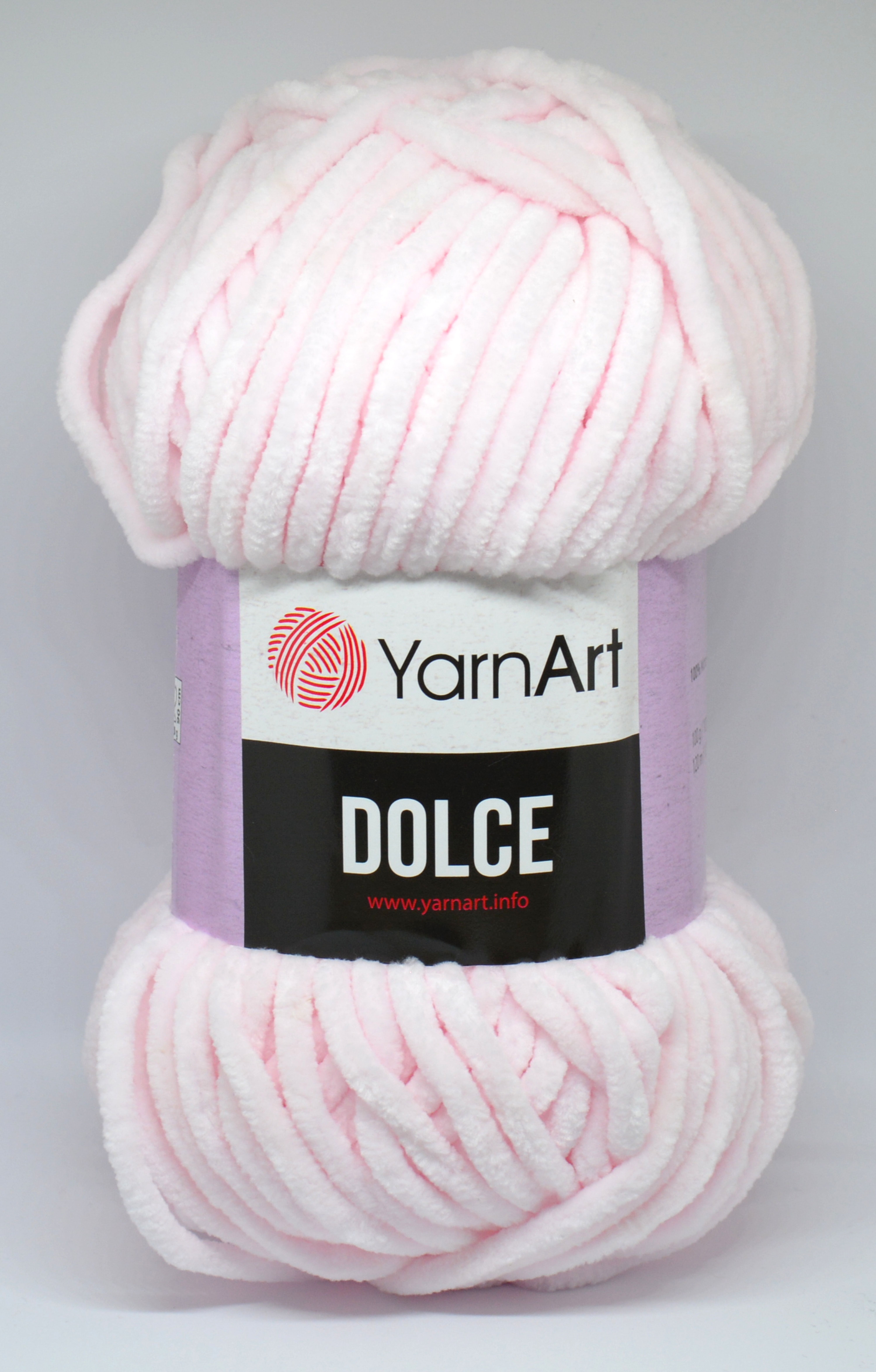 Dolce je jemná a hebká, zároveň odolná žinylková pletací příze, příjemně měkká a hřejivá. Tato příze je vhodná na čepice, čelenky, dětské svetry, deky, hračky, šály a nákrčníky, ušanky, vesty a další. Před pletením/háčkováním doporučujeme udělat zkušební vzorek, jelikož tato příze není vhodná k párání.