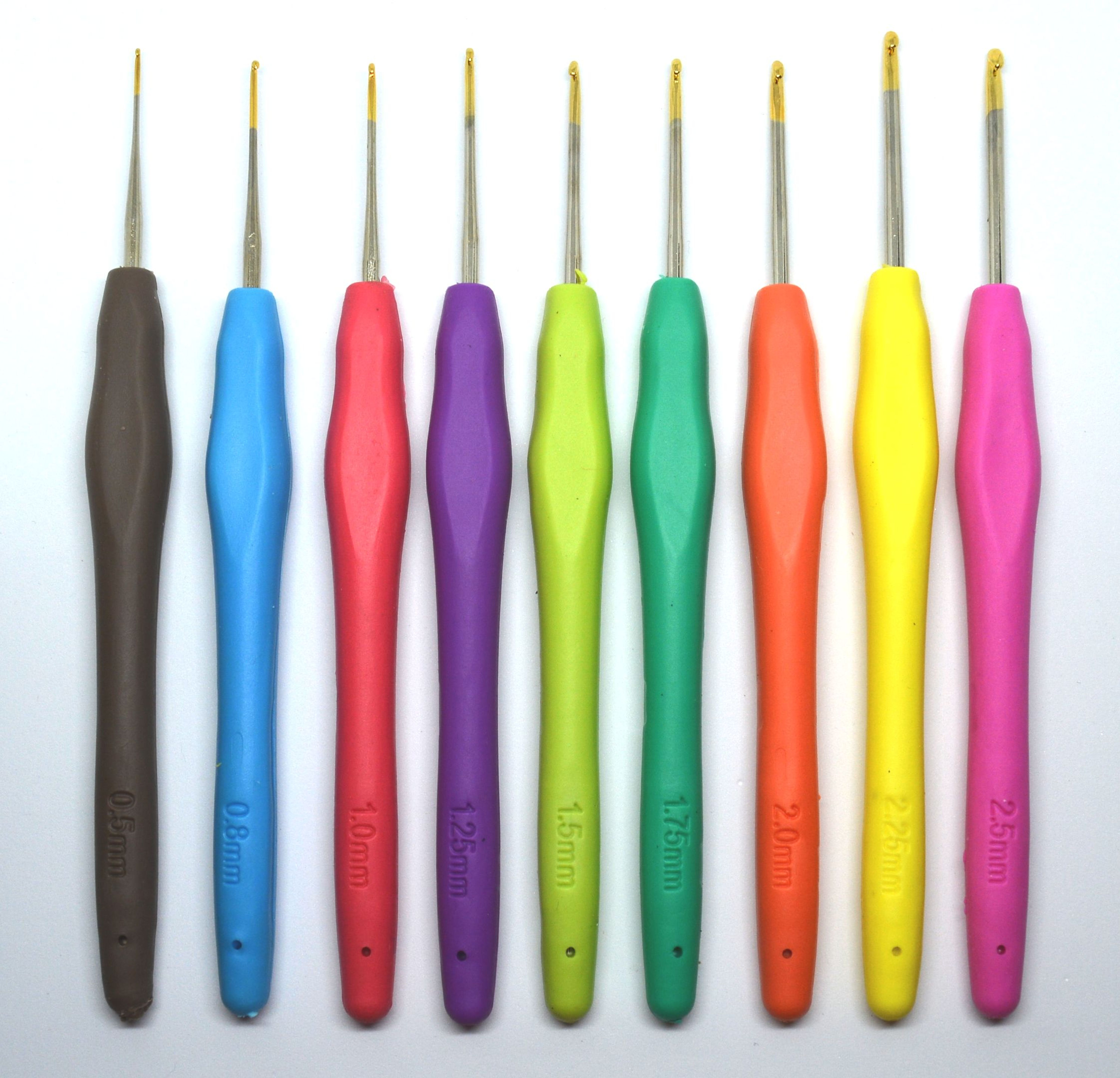 V jedné sadě naleznete 9 háčků se silikonovou rukojetí. Velikosti háčků: 0,5; 0,8; 1; 1,25; 1,5; 1,75; 2; 2,25 a 2,5 mm. Háčky mají různé barvy. Sadu háčků ocení každý, kdo rád tvoří různé výrobky a díky této sadě nebude muset shánět další velikost háčku na nový projekt. Sada háčků je vhodná také jako dárek.