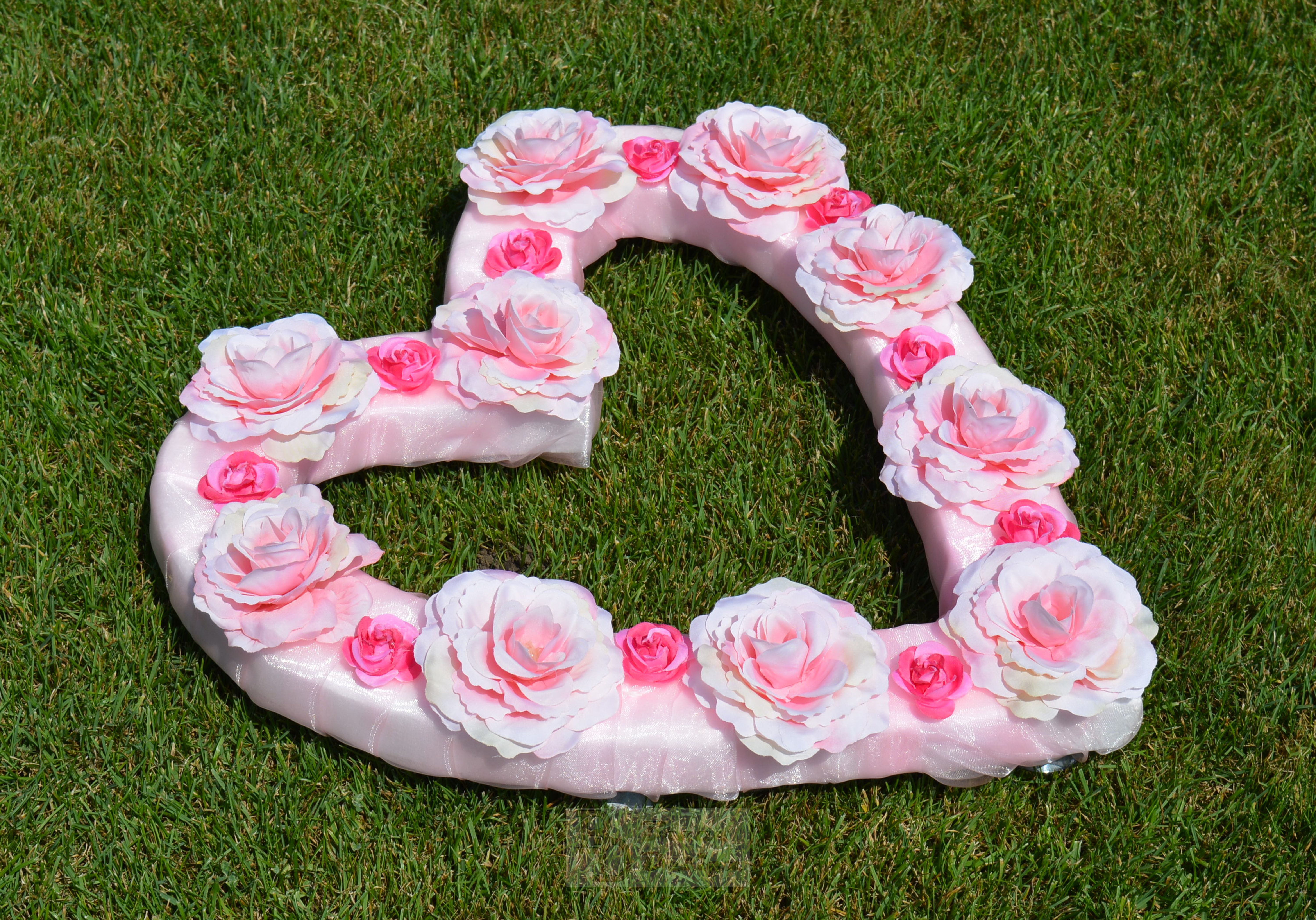 Srdce na auto nevěsty. Velikost srdce je cca 40 x 40 cm. Srdce je na přísavkách. Květiny jsou umělé.
