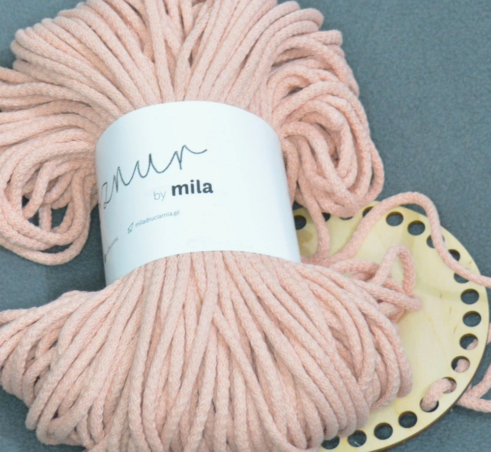 Bavlněná šňůra 5 mm s polyesterovým jádrem. Šnůra je ideální pro háčkování košíků, tašek, rohoží, podložek, pufů atd., ale také pro techniku macramé - drhání. Šňůra je na dotek měkká a pružná.