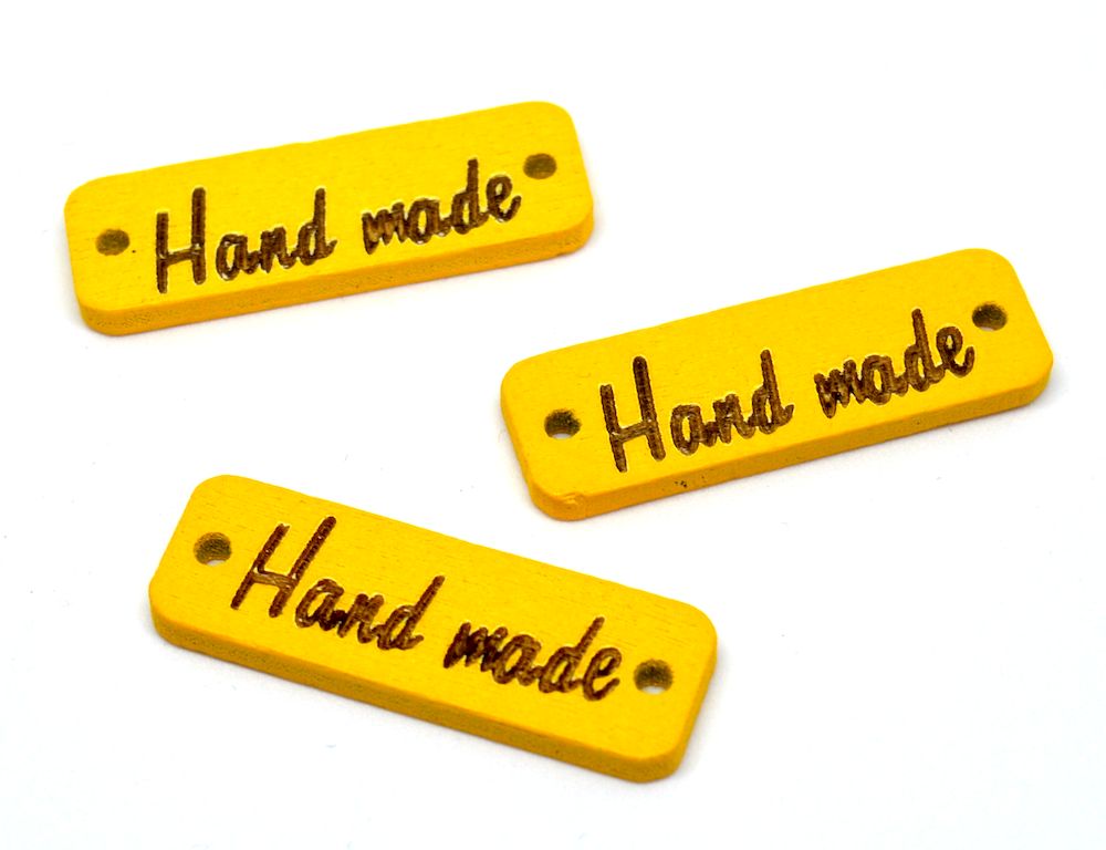 Dřevěná cedulka Hand made obdélník žlutáskladem 10 ks5 Kč/ ks