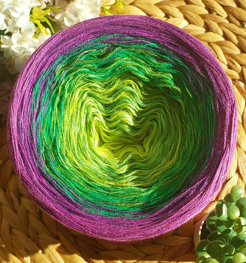Příze Jetelíček přináší jemnost a svěžest rozkvetlé letní louky. Začíná něžnými světle zelenými tóny, připomínajícími čerstvé lístky jetele, a postupně přechází do středně zelených odstínů, jako jsou šťavnaté traviny v ranní rose. Nakonec se barvy proměňují v kouzelnou fialovou, evokující drobné kvítky jetele rozprostřené v letním vánku.
