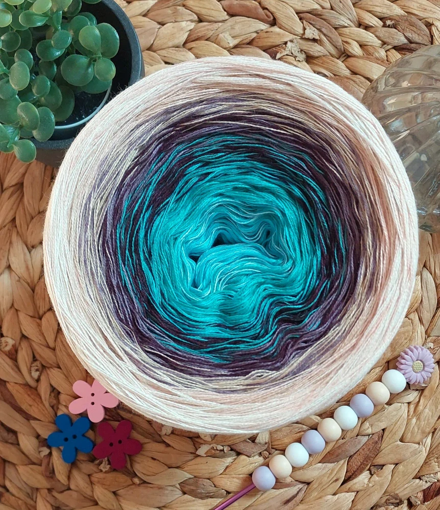 Příze Harmonie propojuje živý tyrkys, elegantní vínovou a zklidňující tóny béžové a krémové do plynulého a vyváženého barevného přechodu. Každý odstín na sebe přirozeně navazuje a společně vytvářejí pocit souznění, který se odráží i v samotném tvoření.