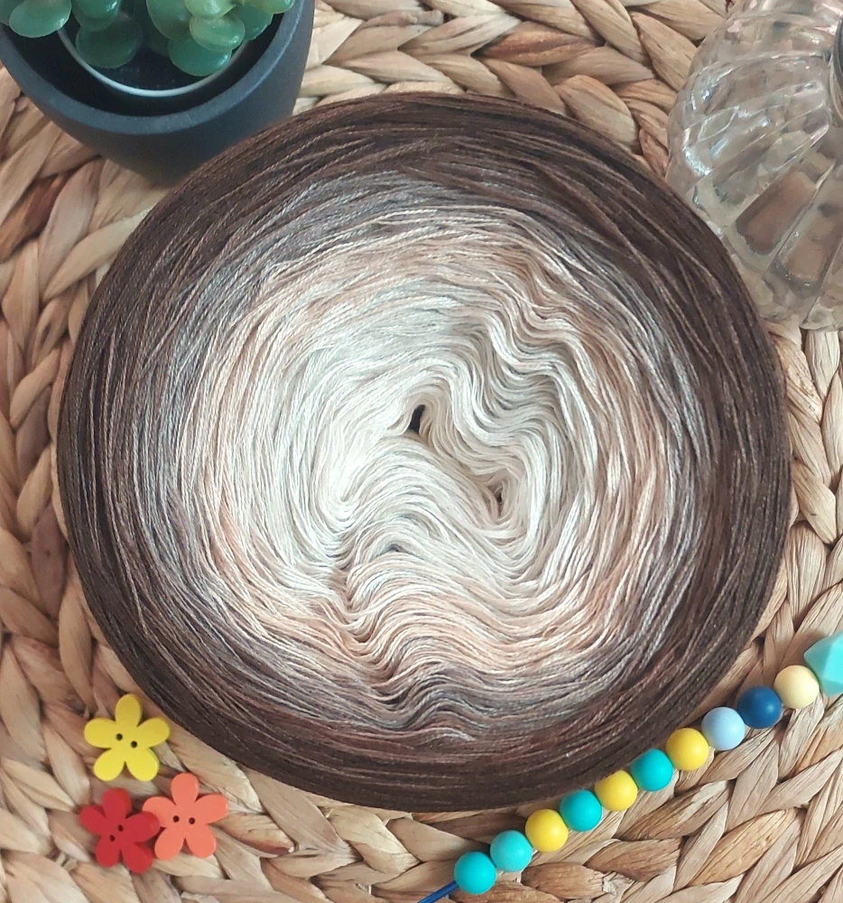 Příze BraunStyle je inspirována teplými odstíny přírody a dřevěného nábytku, kde se béžová postupně mění v jemné hnědé tóny a končí hlubokou tmavě hnědou. Barevný přechod působí elegantně a sofistikovaně, přináší do vašich projektů stabilitu, teplo a nadčasovou krásu.