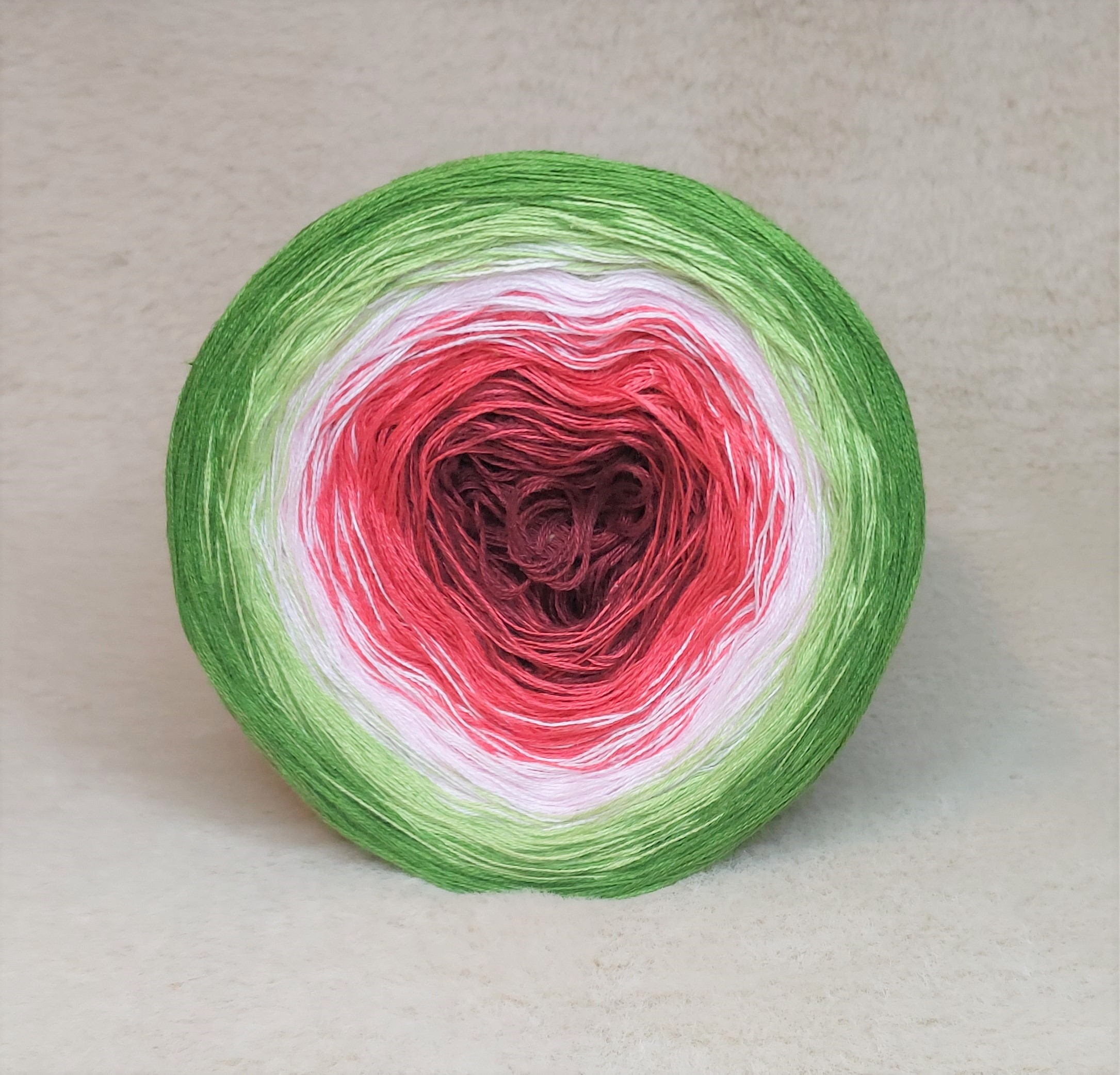 Výrobek doporučujeme prát v ruce do 30°C, nebělit, nežehlit, nedávat do sušičky. Nejlépe sušit rozložené. Přechody jednotlivých barev jsou tvořeny malými uzlíky, které jsou ve finálním výrobku téměr neviditelné.